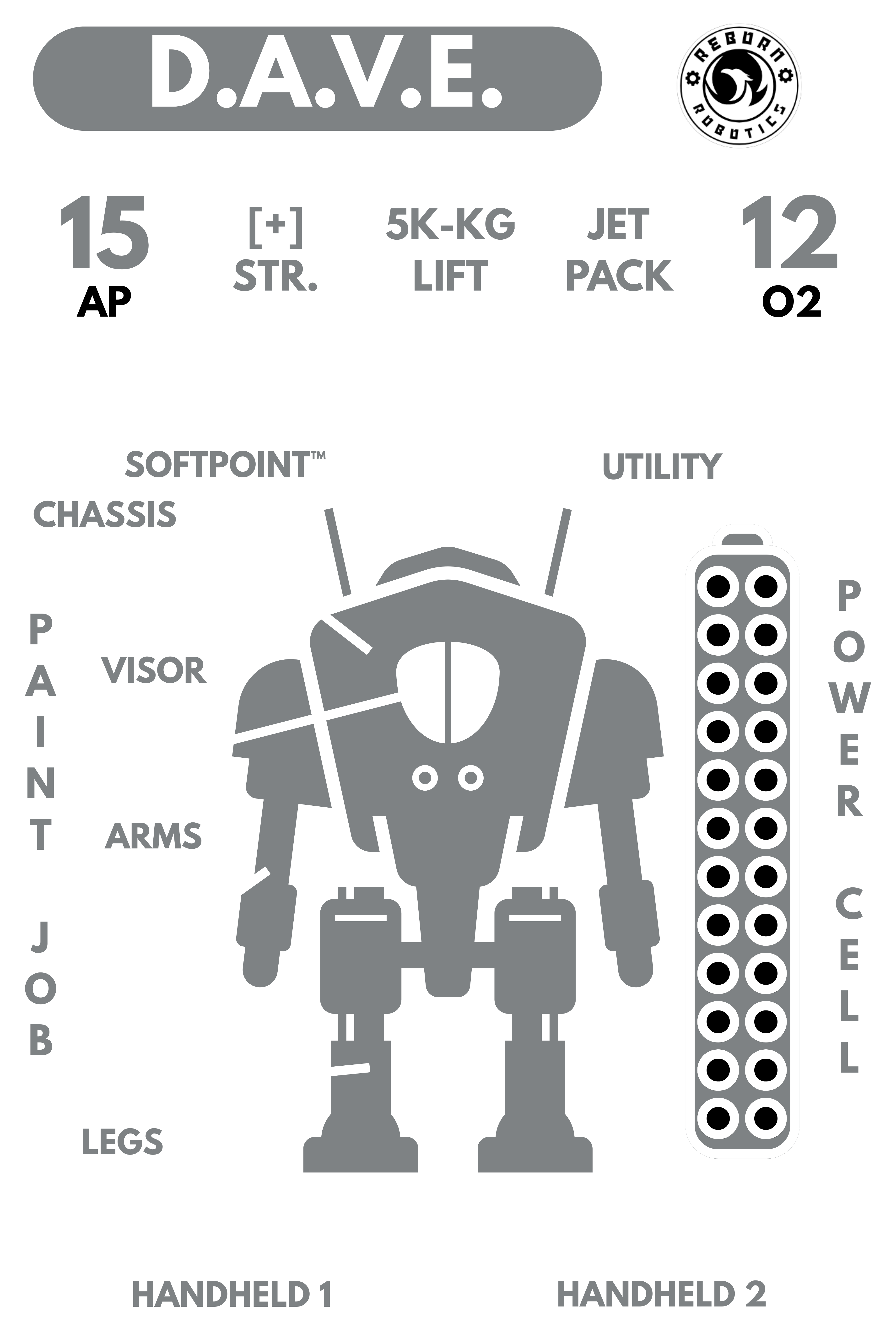 Reborn Robotics is excited to present our newest line of bespoke multi-purpose recreational combat droids — the Defense And Violent Encounter droid, D.A.V.E.!